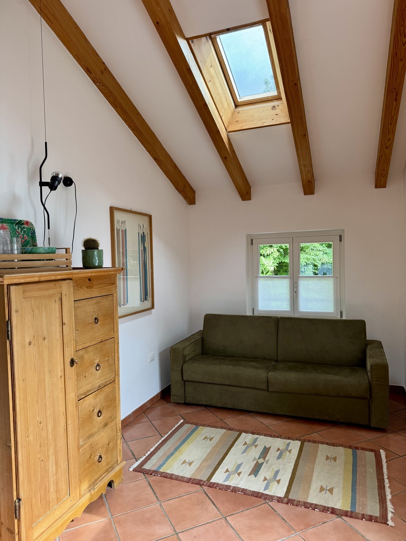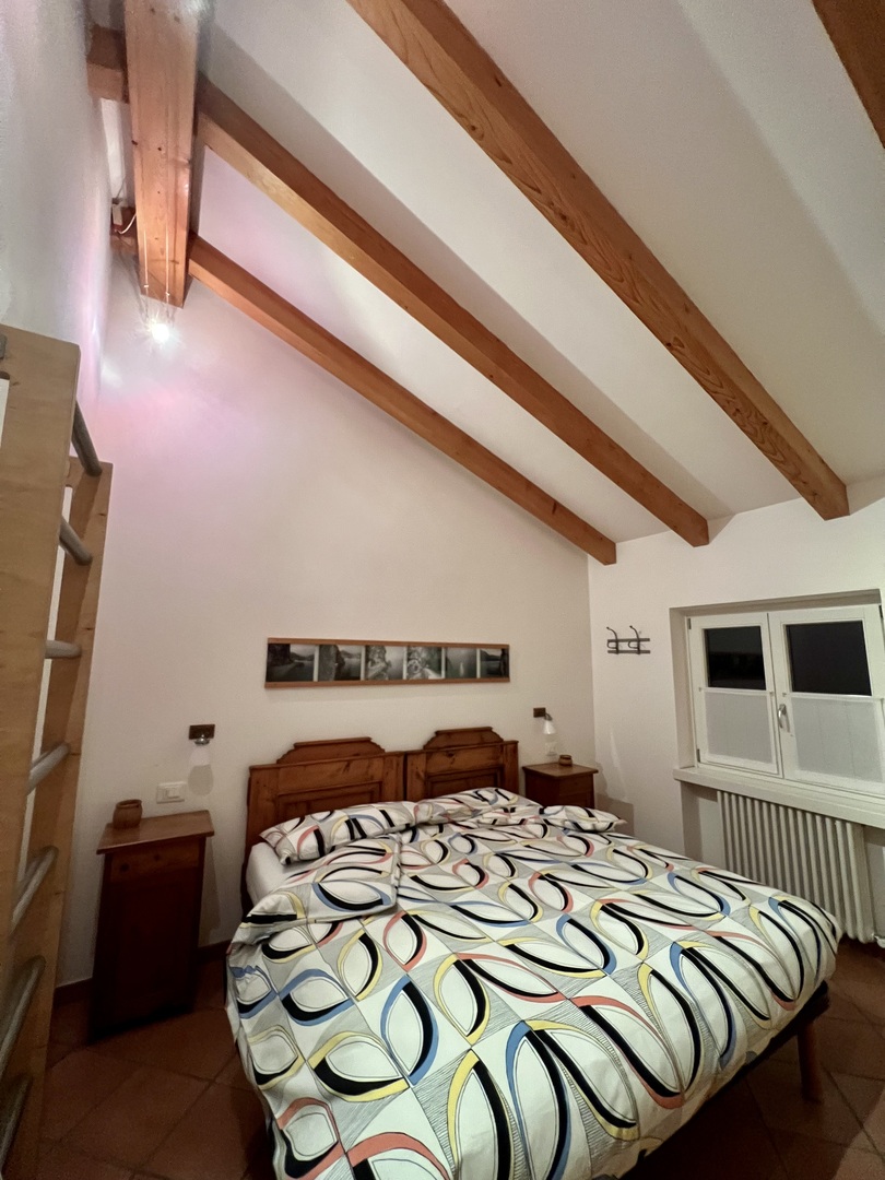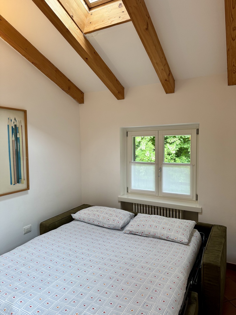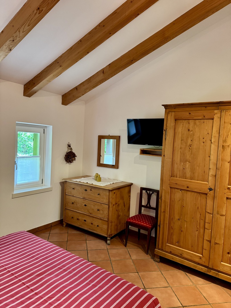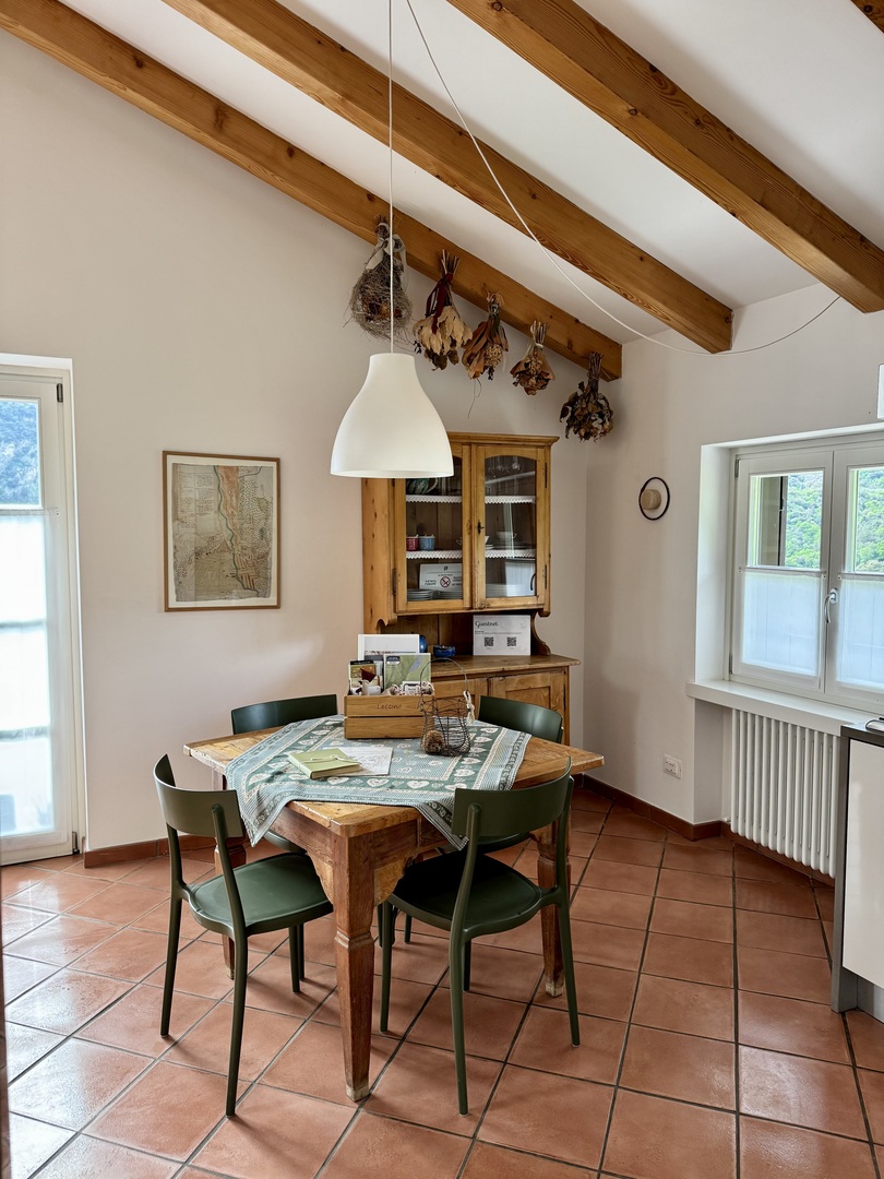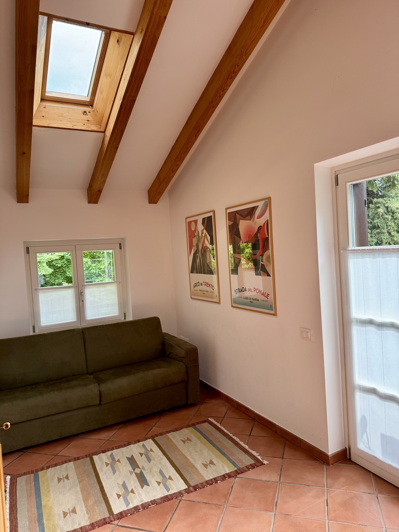 The external stairway leads to the attic apartment that has a balcony looking out onto Mount Stivo and a smaller terrace offering a splendid panoramic view of Lake Garda. The layout of the rooms in this apartment is the same as that of the Casaliva apartment below it.