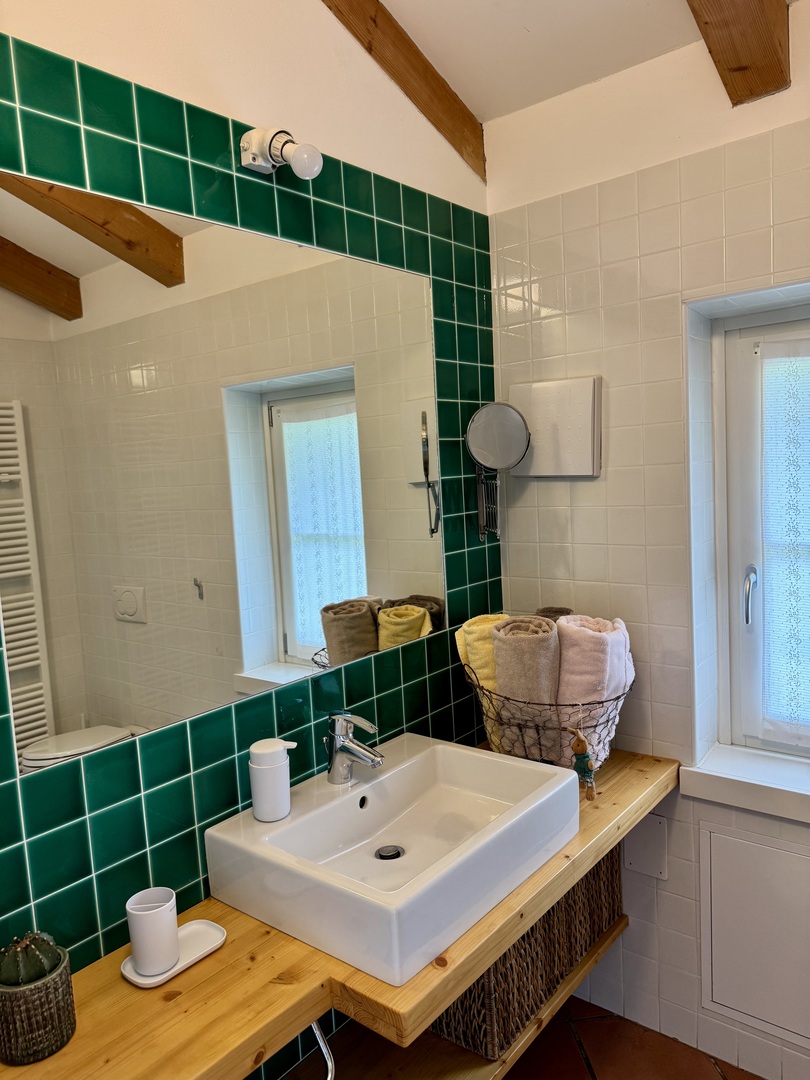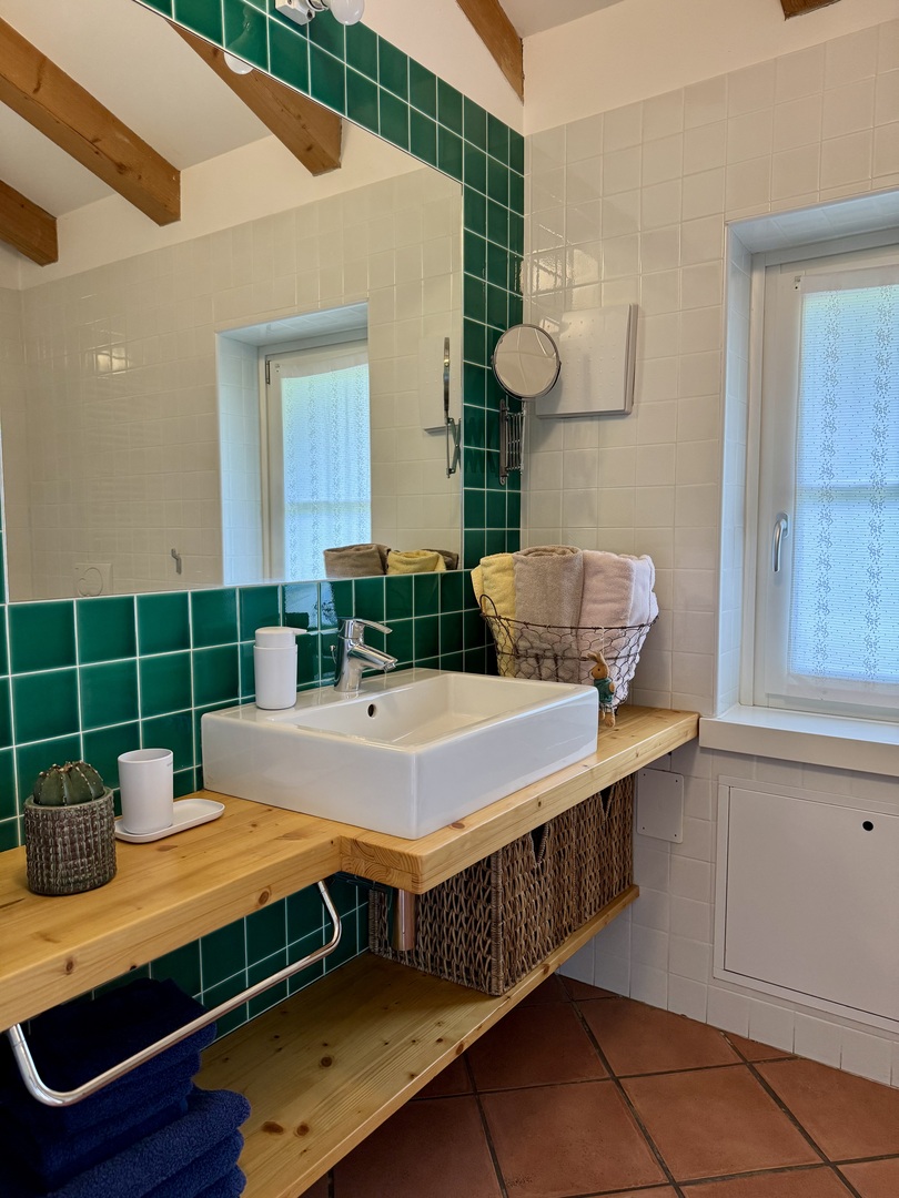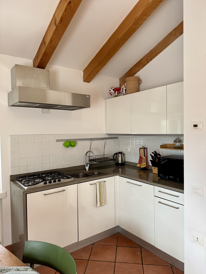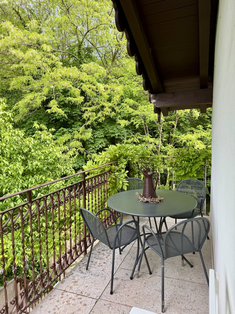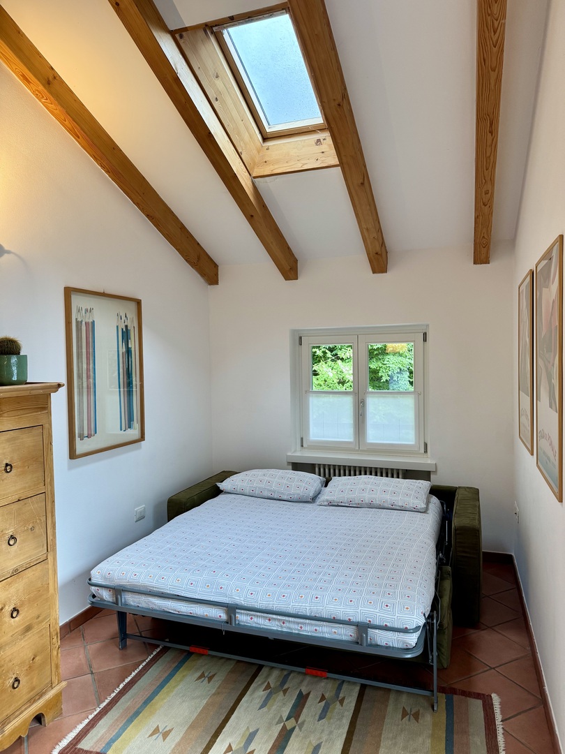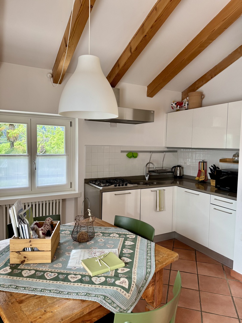 The external stairway leads to the attic apartment that has a balcony looking out onto Mount Stivo and a smaller terrace offering a splendid panoramic view of Lake Garda. The layout of the rooms in this apartment is the same as that of the Casaliva apartment below it.