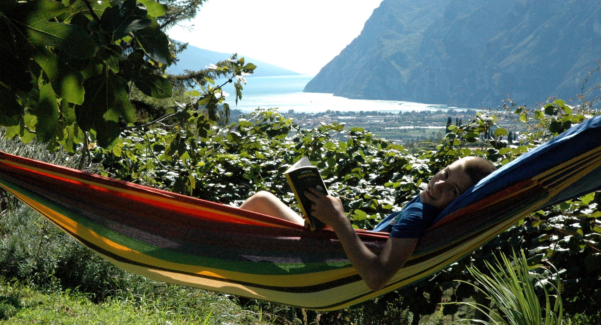 Laghel 7 is a farm offering terraces of organically grown olive groves, oak forests, bushes of aromatic herbs, fruit orchards with ancient fruit varieties and extraordinary wild orchid species. The location is ideal for guests seeking peacefulness but also for those wishing for a holiday spent walking, trekking, climbing, Nordic walking, mountain biking, e-biking, sailing and windsurfing. All this is possible because of our strategic position: it is just a ten minutes’ walk from the famous rock climbing site called “Muro dell'asino”, a classical climbing route with over 40 excellently bolted pitches; located within a network of mountain bike trails suitable for both beginners and experts that run through forests and breathtaking scenery. At the same time we are just ten minutes from the beaches of Lido di Arco, Torbole sul Garda and Riva del Garda, some of the most famous lake towns when it comes to practicing windsurfing and sailing. Our guests also have at their full disposal a large landscaped garden with barbecue area, a solarium magically poised over the Laghel valley and from which on clear days one can see the entire Lake Garda all the way to the distant tip of Sirmione, an above ground pool ideal for the children or for cooling dips on hotter days, plus table tennis and 5-man soccer facilities. We can arrange guided tours for you to visit the area’s archeological sites, Castello di Arco, the medieval towns and the forts.